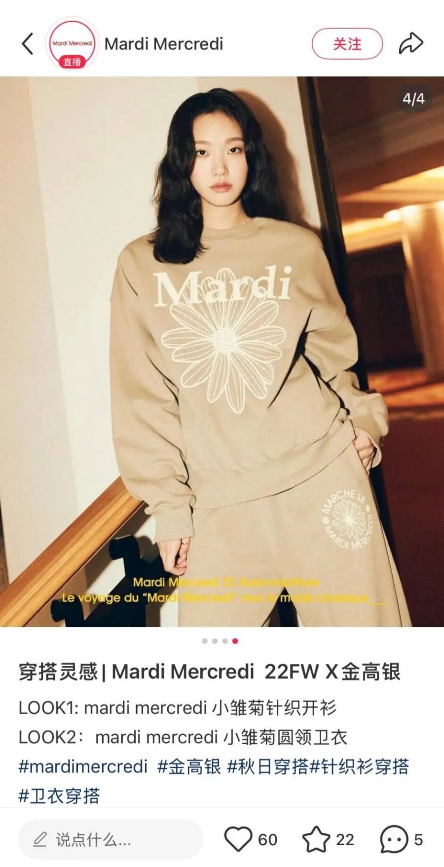 老网红品牌Mardi也是同样,邀请金高银作为品牌代言人,此后金高银多次上身雏菊卫衣。此外,雏菊卫衣也频繁出现在IU、允儿、马思纯、江疏影等多位中韩艺人的私服穿搭里。