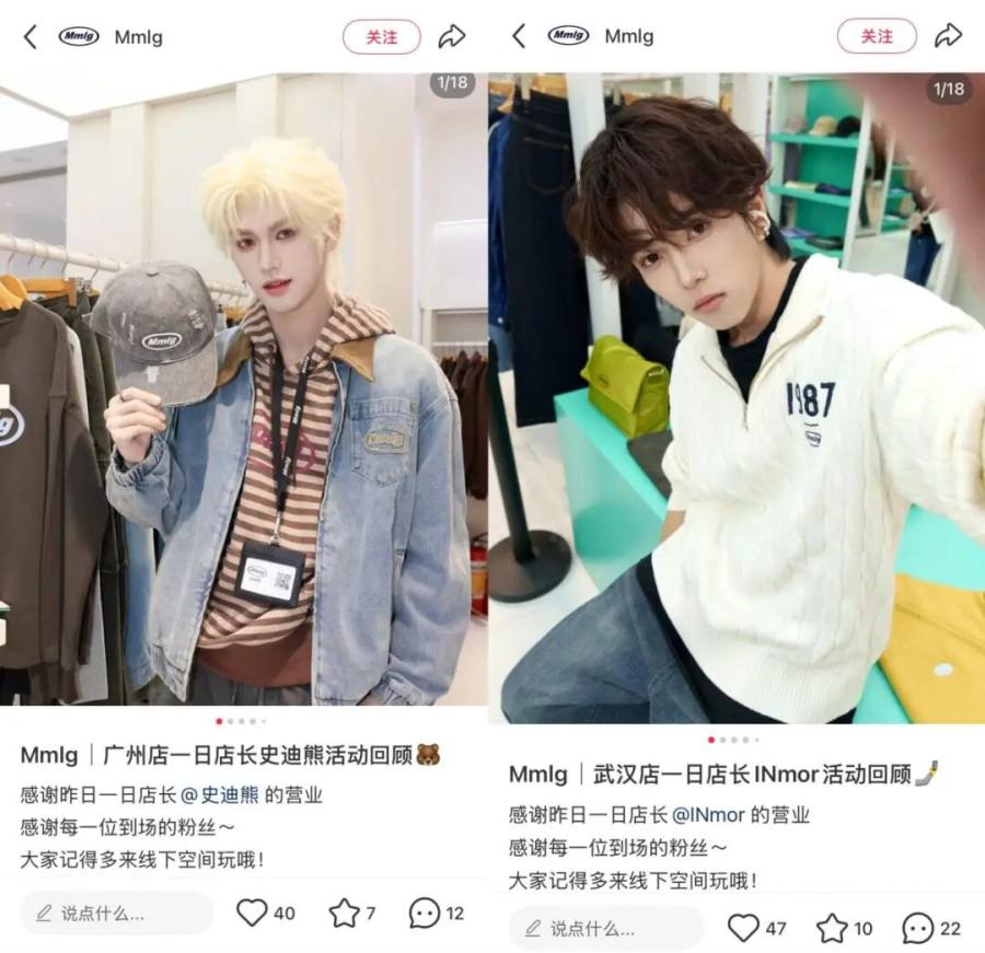 邀请博主作为一日店长,是很多品牌的开业标配,Mmlg就邀请了@INmor、@史迪熊、@You李奕等时尚、穿搭、颜值赛道的博主,作为不同线下店的一日店长。