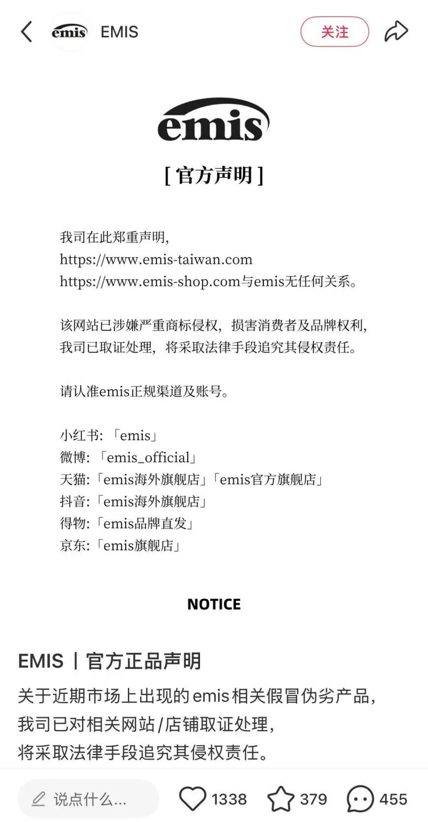 Mardi的小雏菊和腊肠狗图案显著吸睛,但也给了假货可乘之机,各大电商平台充斥着大量的仿冒品,消费者难辨真假,且部分仿冒品销量并不低,消费者都反映出“买到后才发现不是原品牌。”emis也面临着同样的问题,此前官方就发布声明表示“已对相关(侵权)网站/店铺取证处理。”