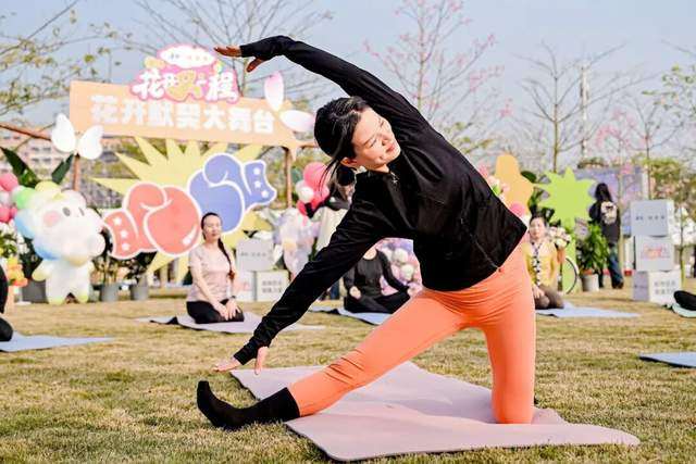 瑜伽爱好者在正在舒展身体,废旧塑料压制小礼品的机器前人群熙熙攘攘,盛装打扮的小丑滑稽搞怪,惹得围观者哈哈大笑。