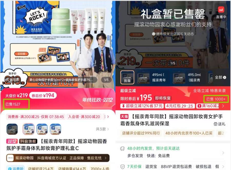 正式发售不到一天5000份礼盒已经显示售罄。不过根据摇滚动物园抖音和天猫旗舰店数据显示,当前该礼盒共计售出2500+,仍有部分回流订单可以购买。
