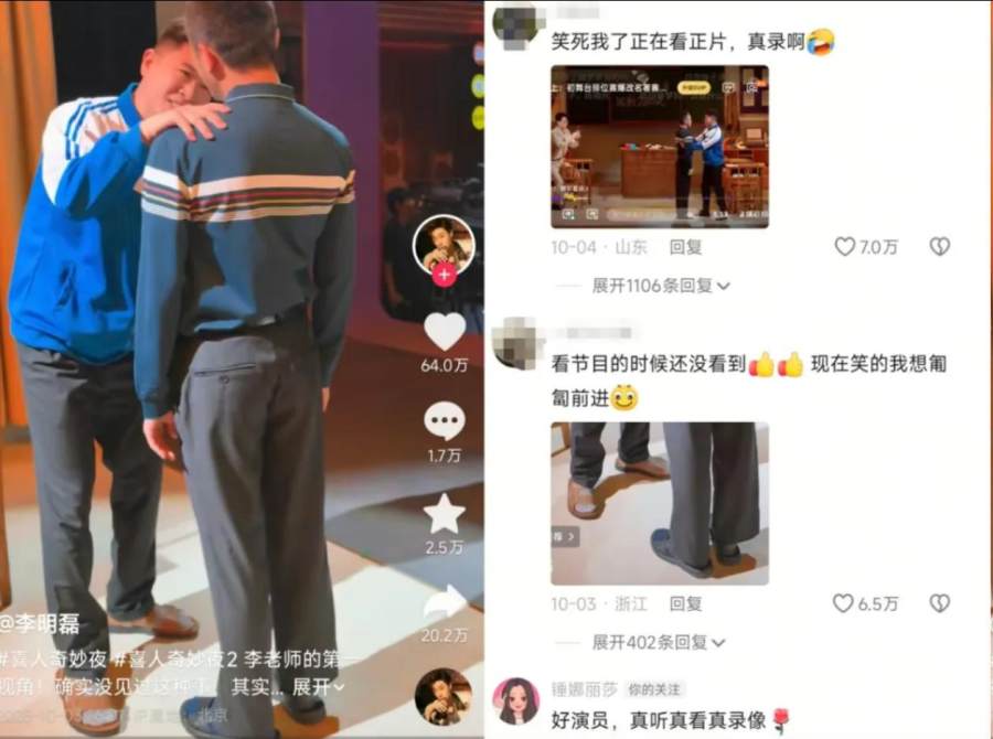 比如在《开学第一天》的节目录制过程中,演员李明磊就将在录制过程中的现场视频发布至其个人社交媒体账号,得到了网友热议。更有网友从这一视频中找到了新的细节化“笑点”。