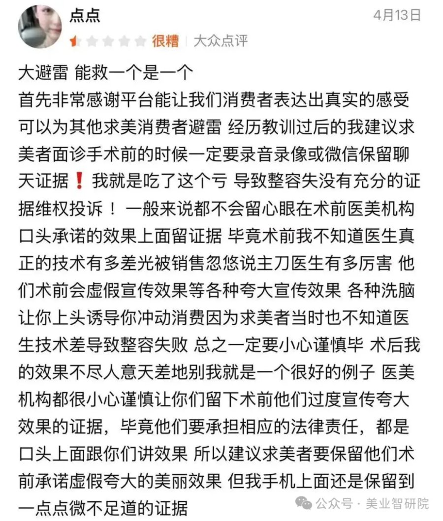 此前,消费者因担心渠道店售后差,才多花近2万选择上海首尔丽格,结果术后维权反被冷处理,杆件网上一搜竟有“失败受害者维权群”。消费者表示:医美好评可刷,差评皆血泪。务必全程录音录像、保存微信承诺,把口头效果变成白纸黑字,否则一旦失败,只剩维权无门的天价教训。