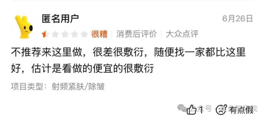 不少消费者吐槽,咨询顾问只发医疗广告,不回复具体问题,答应的赠品不履约,赠送项目预约困难,甚至现场给消费者脸色看。还有消费者在做项目时被护士催促,操作时间缩短,做完也不进行保湿护理就赶人走。