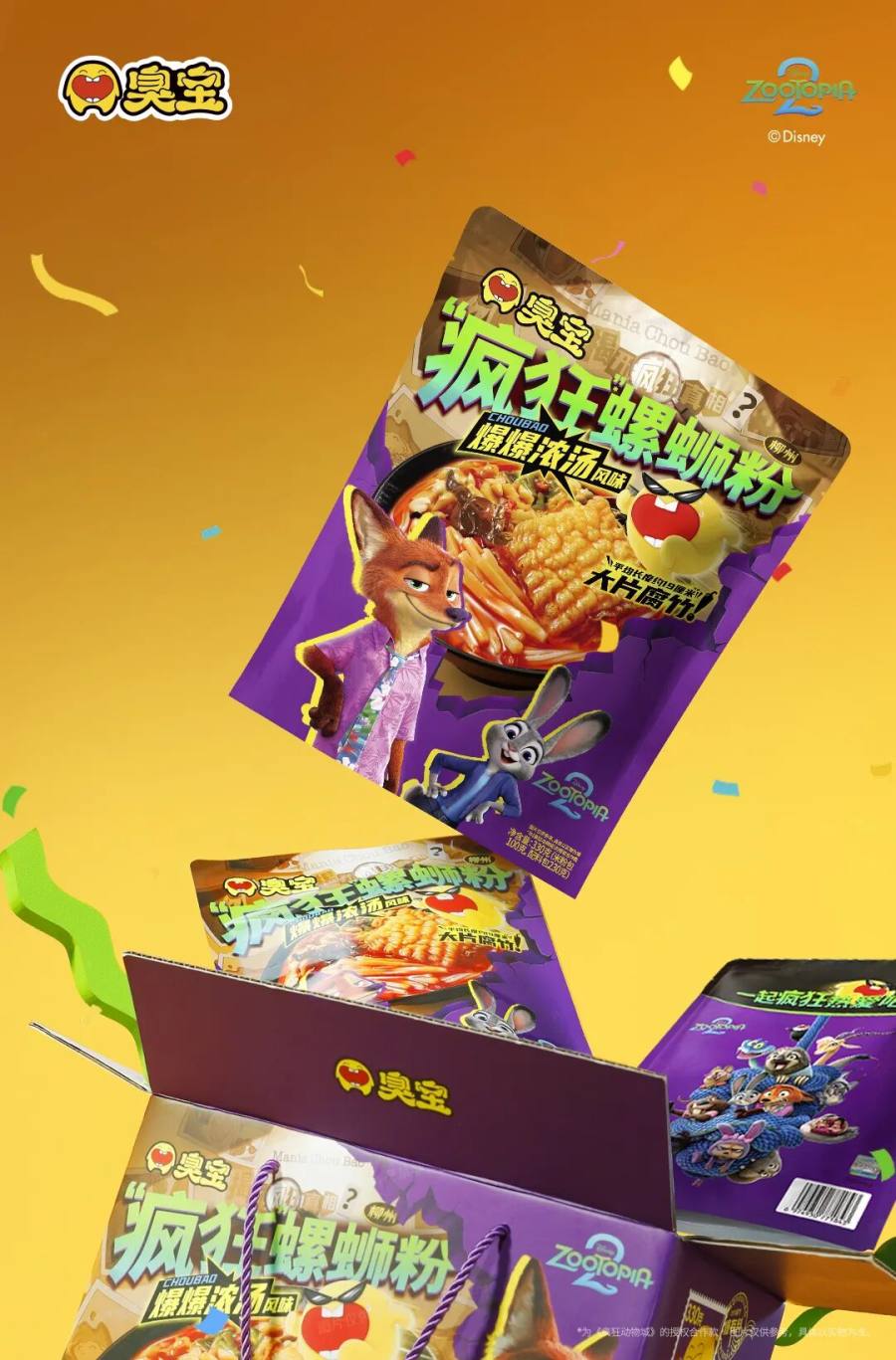 也正因此,臭宝品牌与《疯狂动物城2》的合作也具备着更深层的寓意:品尝一碗地道的臭宝螺蛳粉,就像跟随影片踏上未知冒险的过程,需要勇气开路,但收获的将是前所未有的、丰富而立体的味觉体验。这种“勇于尝试,收获惊喜”的情感共鸣,也让品牌价值与IP价值观实现了更深度的绑定。