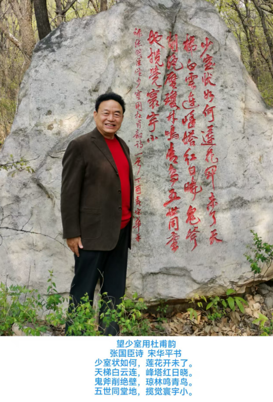 中国书协副主席、著名书法家宋华平先生曾书写《望少室用杜甫韵》,后由嵩山风景管委会刻石于少室山,成为嵩山文化旅游中一道靓丽的人文风景。
