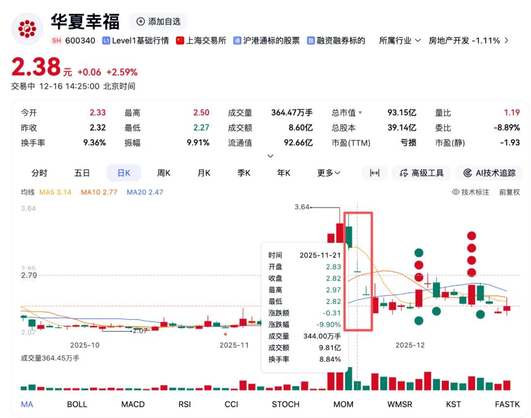 11月19日盘中,华夏幸福股价创出了3.64元的近期高点。在王葳发布公开声明次日,华夏幸福股价连续三日大跌。