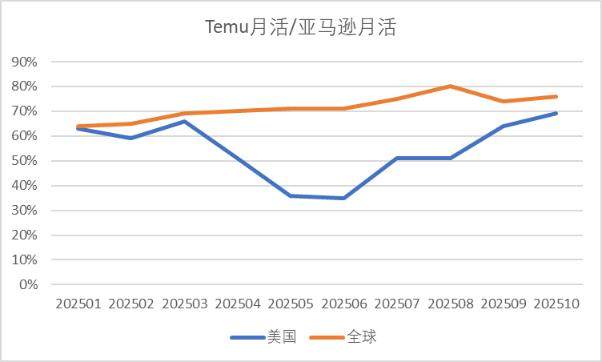 从用户数据看,Temu月活已超5.2亿,达亚马逊70%以上,具备对标基础。