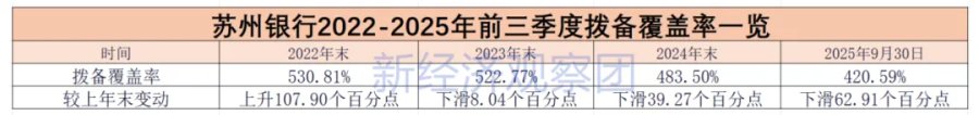 但在拨备率方面,同期苏州银行数据分别为530.81%、522.77%、483.5%和420.59%,走低趋势明显。其中2024年末和2025年前三季度末分别大幅下降近40个百分点和超60个百分点。