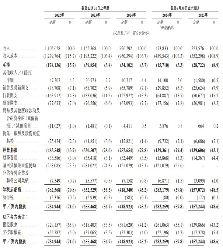 同时,奥动新能源的毛损率从2024年上半年的4.4%恶化至8.9%。这意味着公司每获得100元收入,亏损从4.4元扩大到8.9元。有业内人士表示:“这不是盈利改善,而是用业务和收入萎缩,换取亏损绝对值减少。”