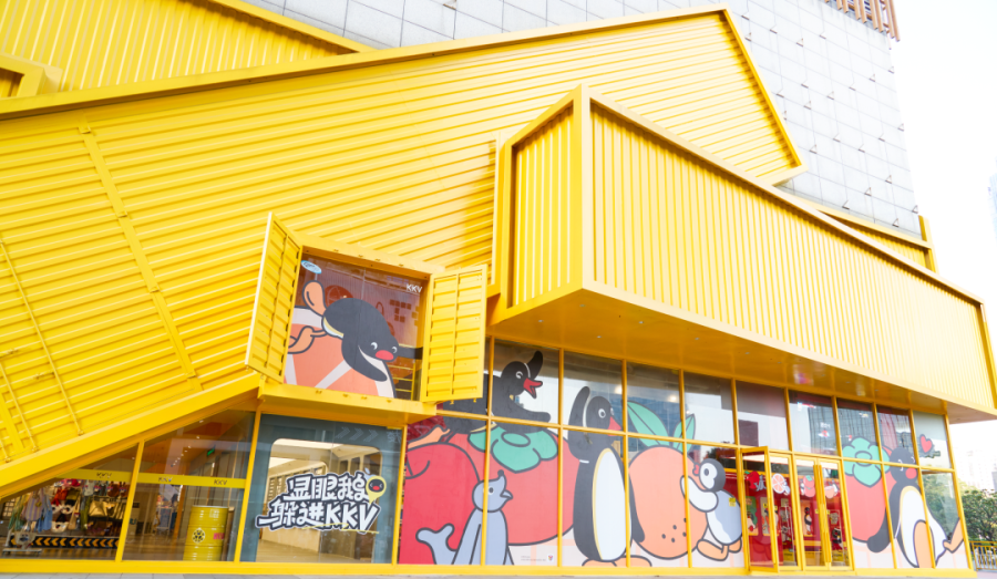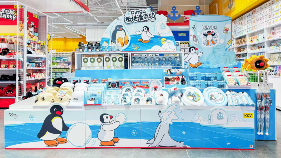 KKVxPingu“显眼鹅躲进KKV”主题堆头及氛围门店