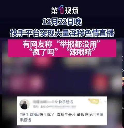 12月22日深夜,众多网友反映,快手平台上突然涌现出大量涉及色情等违规内容的直播间,内容包括播放淫秽影片、主播擦边低俗表演等。