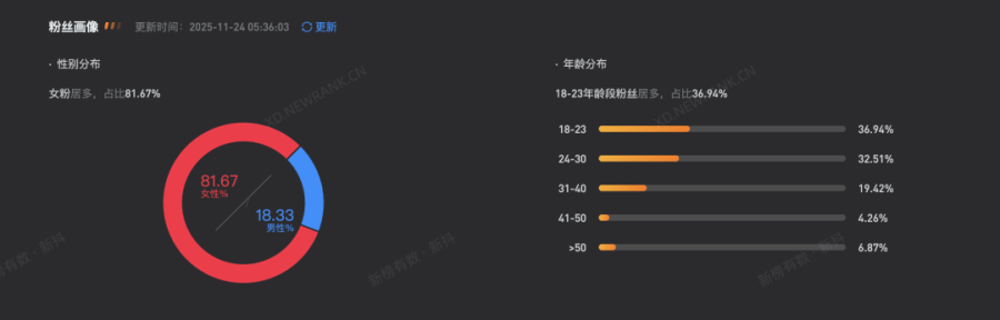 尽管其粉丝受众覆盖范围有限,但这一年龄段群体普遍具备更强的独立消费能力,为团队稳定的流水输出提供了支撑,也是其短期内快速成长的关键因素。