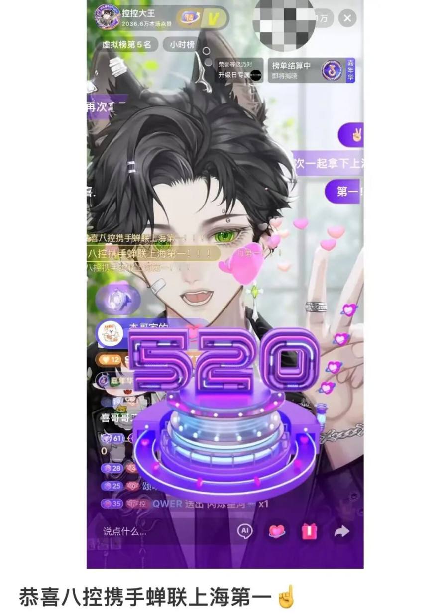 主播矩阵中,“控”无疑是最核心的主播IP,也是语音厅赛道最早实现破圈的主播。作为顶流社社长,他自身人气居高不下,具备极强的号召力。从数据来看,“控”的票常年稳居平台娱播TOP10。
