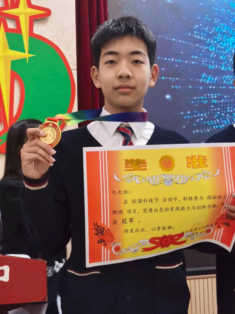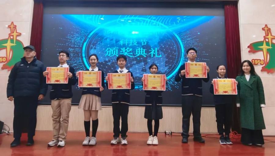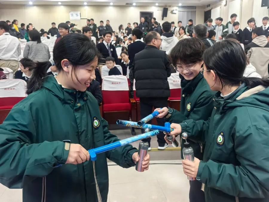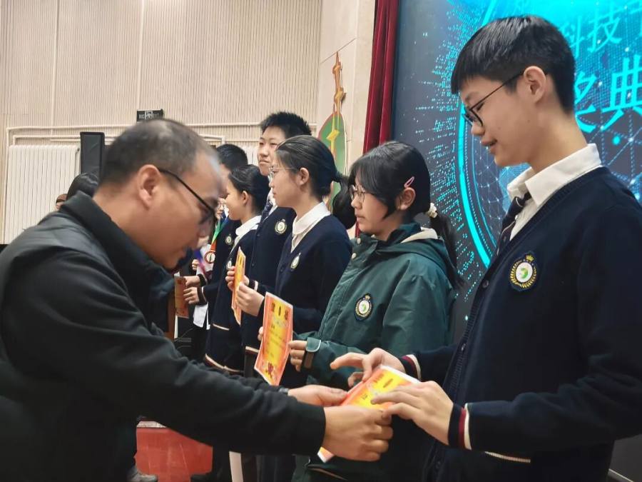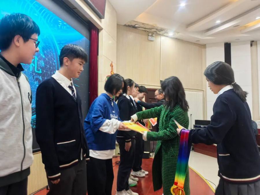 在颁奖典礼环节,校长闫凯为获奖学生颁奖并深情寄语:“科技是点亮未来的火种,希望同学们永葆这份探索热情,让创新思维成为人生最亮的底色,在科学道路上不断攀登新高峰!”随后,闫校长进一步勉励全体师生:“今日之创意,是明日之突破的萌芽;今日之探索,是未来之创新的基石。愿我们以科技为舟,以创新为帆,在时代的浪潮中勇立潮头,共同书写属于未来的科学传奇!”闫校长的讲话将活动推向情感高潮,既肯定了同学们的科创成果,更以“火种”为喻,激励全体师生以科技为炬、以创新为翼,在探索未知的征程中永葆热忱。