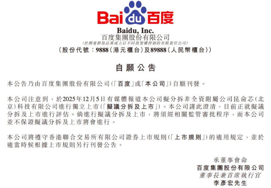一方面,将仍处投入期、受技术、政策不确定性影响的自动驾驶业务剥离,能有效控制其对集团整体财务和市值的潜在波动风险。此外,百度也可以实现业务结构的优化和战略重心的调整。