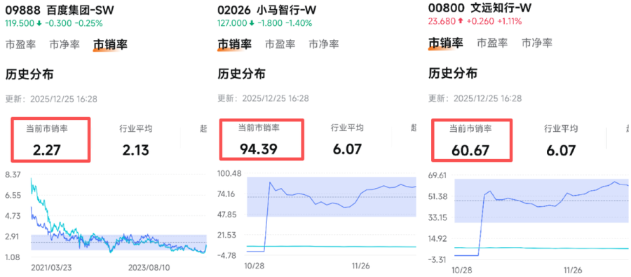 对当下的百度而言,将自动驾驶业务分拆上市,获得更高估值是大概率的事情。当前,百度整体市销率仅为2.27倍,而小马智行市销率高达94.39倍,文远知行市销率也达到60.67倍。
