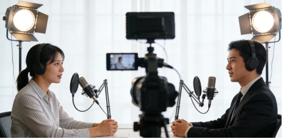 在情节反转再反转的短剧和背景音洗脑的短视频之间,在各式各样的探店视频和好物分享之间,正出现一股“清流”。当你手指划过B站、小红书和抖音的视频,或许曾看见这样的一幕:两人在精致或简单的布景下,并排或面对面而坐,一人一支麦克风,不紧不慢地对谈。一如某档访谈节目。但又不同于电视上的访谈,这类视频动辄一两个小时,甚至可以长达四五个小时。而你为之停留,往往更多是因为,你对麦克风背后的人很熟悉。