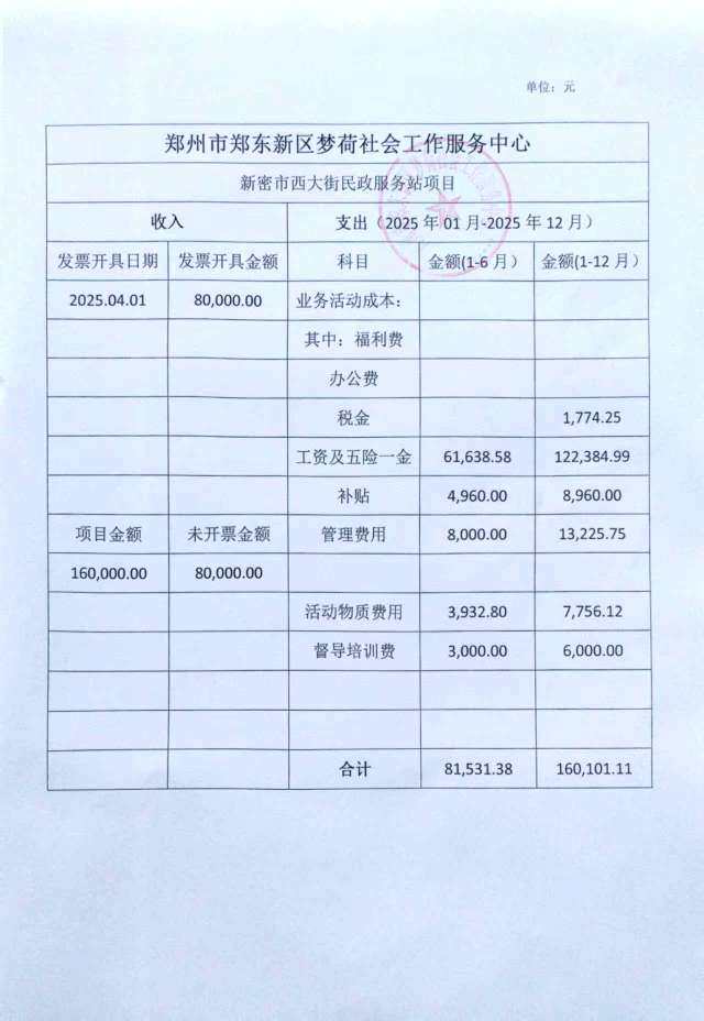新密市西大街街道办事处民政服务站项目2025年度财务公示