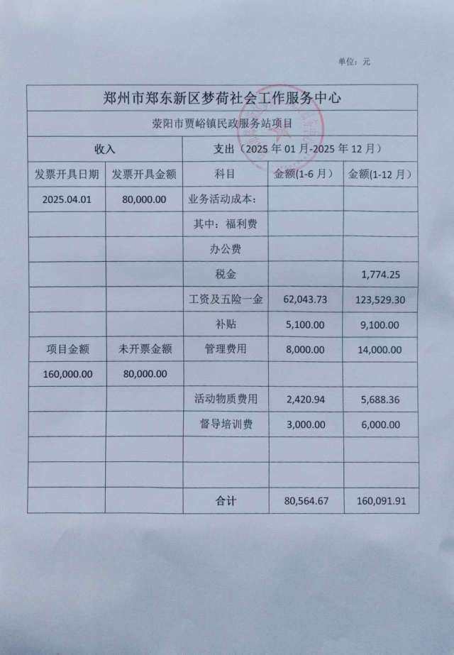 荥阳市贾峪镇民政服务站项目2025年度财务公示