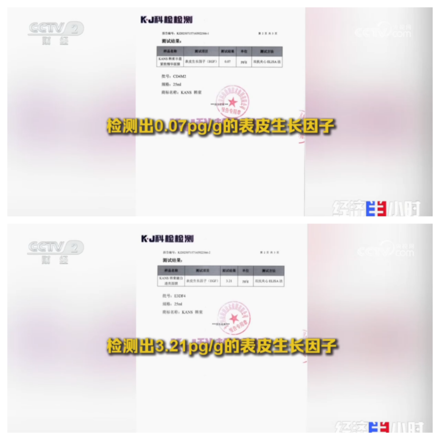 此次曝光显示,央视记者将韩束丰盈紧致精华面膜、韩束嫩白透亮面膜送往有资质的第三方机构检测,结果分别检出0.07pg/g和3.21pg/g的EGF。