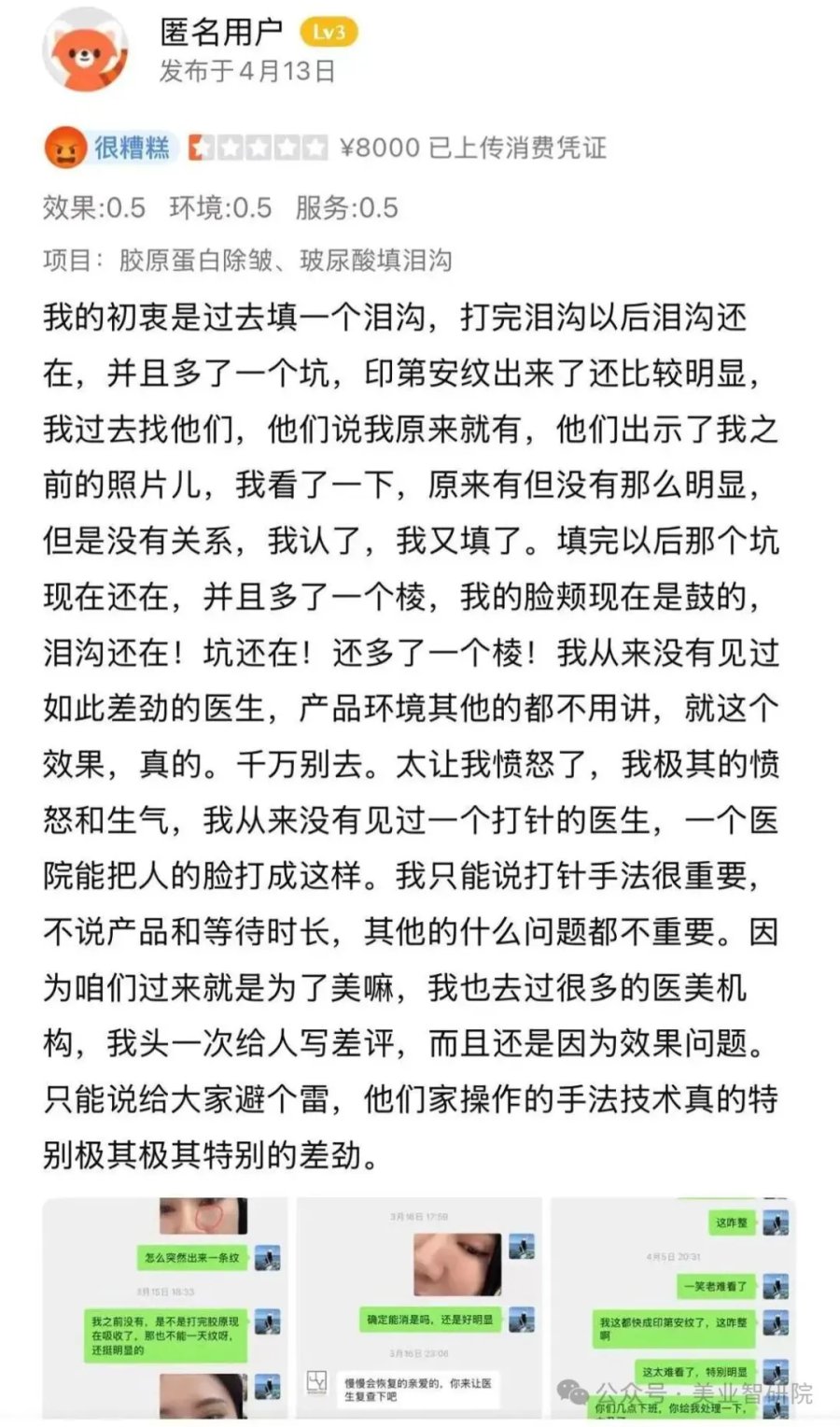 手法差到让多年医美用户首次写差评,提醒求美者避雷:低价再诱人也别拿脸去试刀,技术不过关,一切白搭。