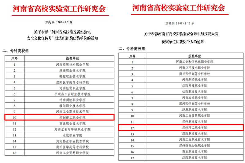 郑州理工职业学院荣获河南省高校第五届实验室安全文化宣传月和实验室安全知识与技能大赛优秀组织奖