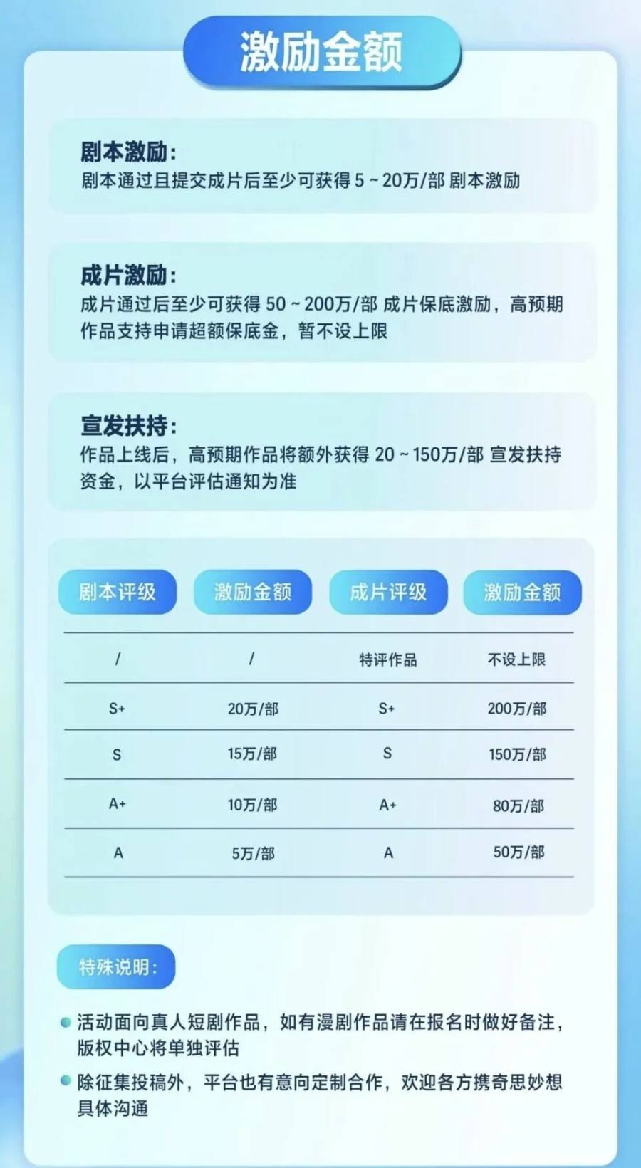典型例如抖音集团短剧版权中心10月发布的“万象短剧计划第二期”,其中规定,古典名著/传奇人物主题下,创作者成片通过后至少可获得50万元保底激励,上不封顶。这样平台端对精品内容的“兜底”,也鼓励更多优质创作者勇于试错,带着更好的创意、更新鲜的故事,大胆投入短剧的创作海洋。