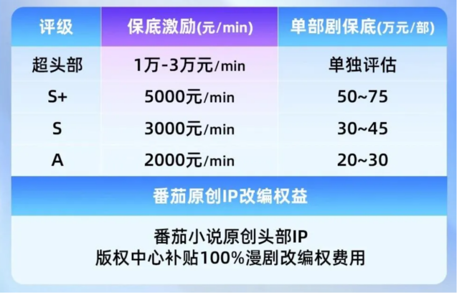 今年11月,抖音集团短剧版权中心还提出了常态化的影视机构专项成长计划,针对想入局竖屏微短剧的影视机构,开放海量番茄IP小说改编权,并提供最高200万/部的保底金额和最高等级的分成系数。