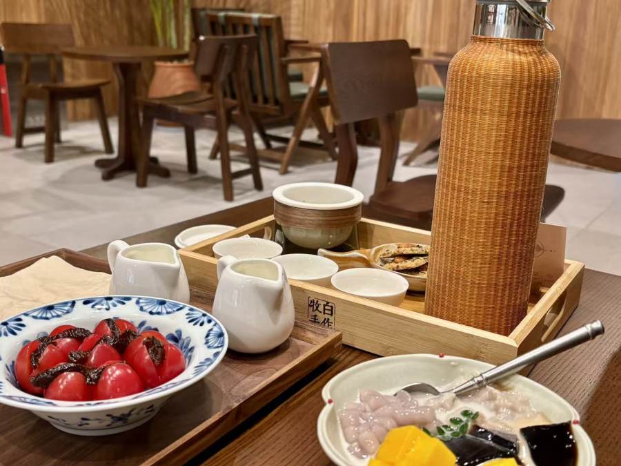 牧白手作的茶肆模式探索,早于上城龙湖天街店落地。今年国庆假期后,品牌便在年轻人聚集的塘人街开设首家同类型门店,通过真实营业场景打磨产品、测试消费需求,为后续商场店运营沉淀数据与经验。
