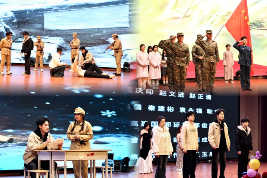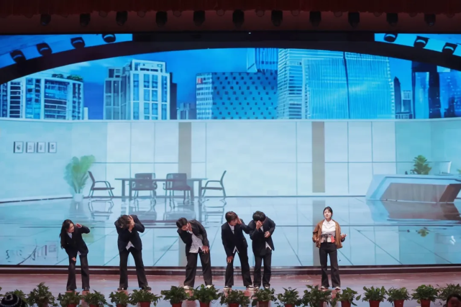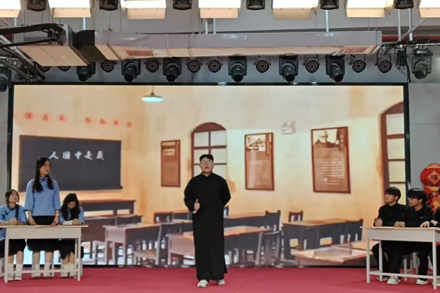 语言类节目堪称晚会的“欢乐引擎”与“情感共鸣点”。小品演员们以诙谐台词、夸张神态再现师生间的趣味日常,引得全场捧腹不已;相声以幽默风趣的表达讲述成长趣事,笑点密集、掌声不断;朗诵表演者身着正装、神情肃穆,以铿锵有力的语调诉说青年一代的责任与担当,字里行间满含深情,深深触动全场师生,引发强烈共鸣。