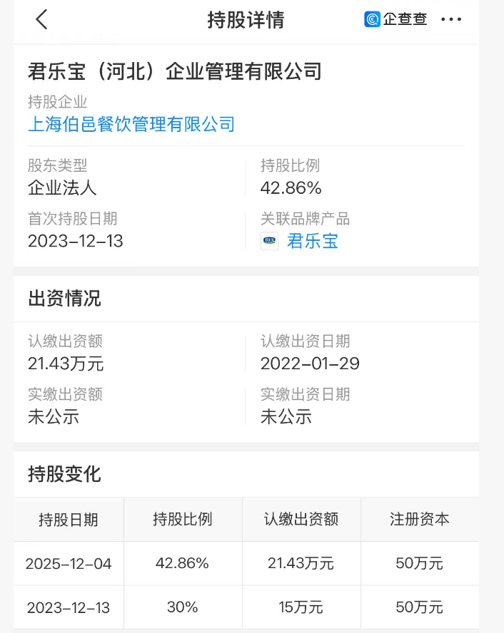 值得注意的是,茉酸奶自身近期也刚完成一场权力更迭:创始人赵伯华卸任全部职务并清空股份,彻底离场;原联合创始人、加盟商出身的顾豪成为控股股东及法定代表人。与此同时,乳企君乐宝以21.43