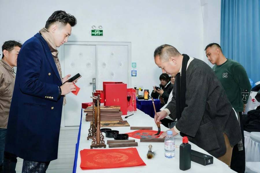 活动在写福赠福环节推向高潮。六位艺术家同台挥毫,饱蘸浓墨在红纸上书写福字,笔力遒劲、墨香氤氲,一个个寓意吉祥的“福”字承载着对新年的美好期许。艺术家们亲手将福字赠予在场观众,风水老师李明远还为部分福字题写了风水吉祥寄语,传递“福气满满”的新春祝福,现场洋溢着欢声笑语与文化温情,让艺术的暖意与风水的吉庆浸润人心。