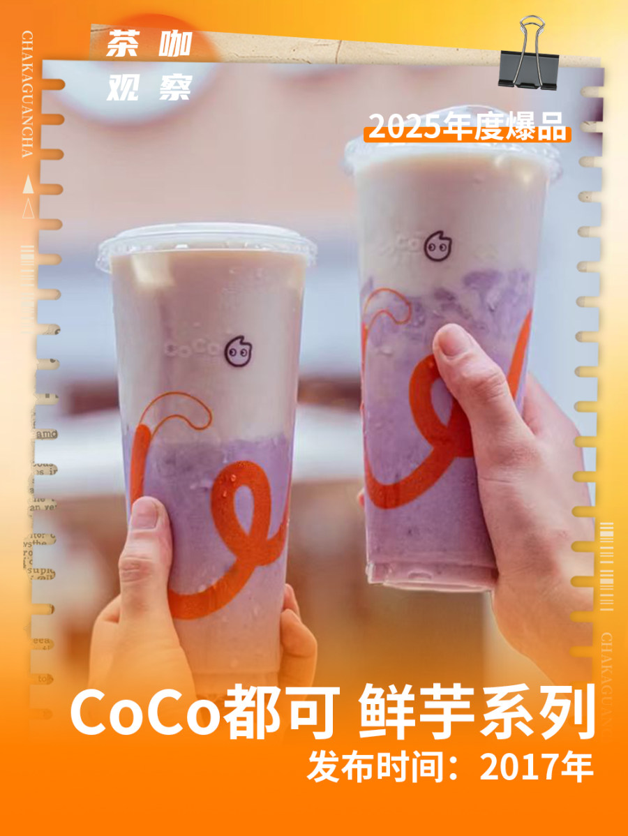 鲜芋系列作为CoCo都可的经典款,仍保持较高人气,其中双倍鲜芋奶绿和鲜芋青稞牛奶,在2025年的高峰期单日销量超过10万杯。