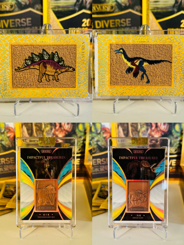国家地理恐龙系列的手工刺绣卡和铜块镶嵌卡,图源:@Suplay 黄万钧