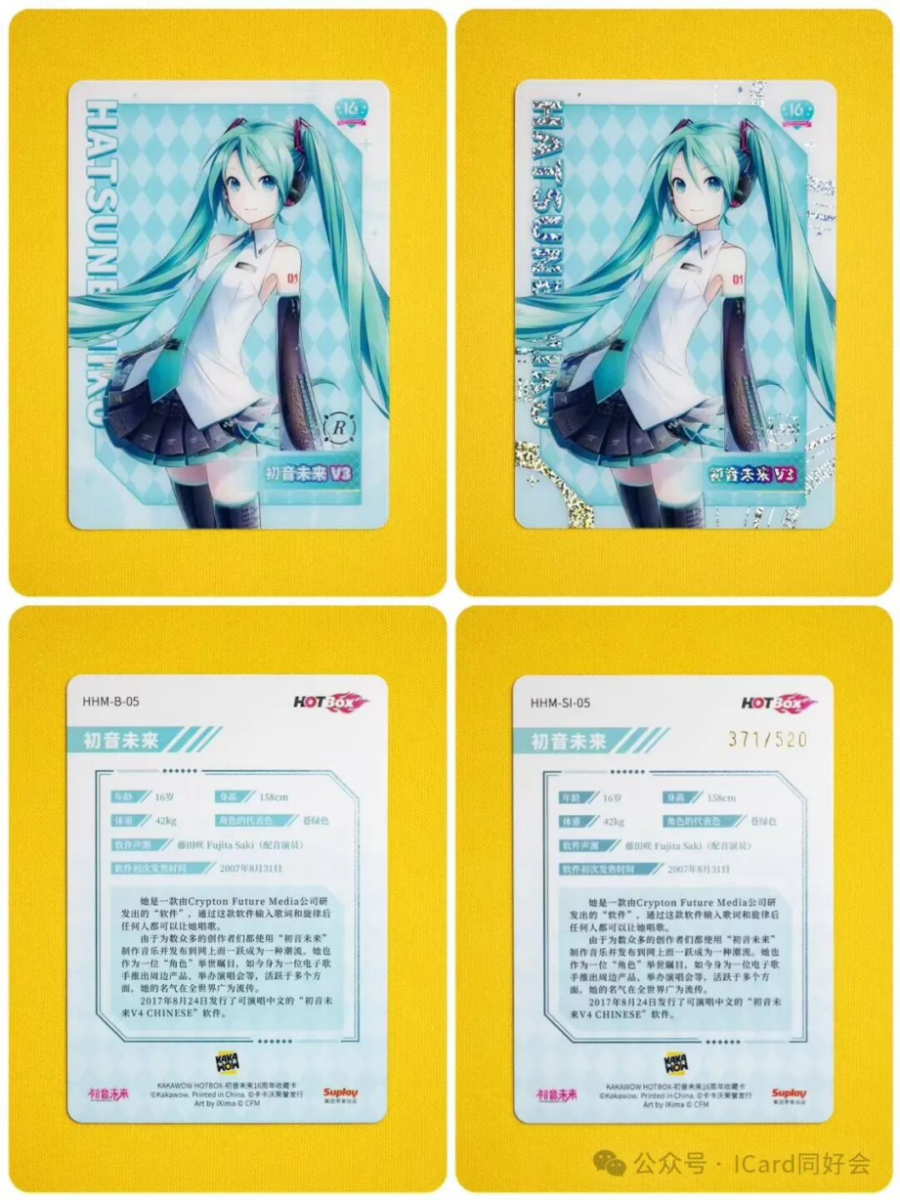 以卡卡沃初音未来16周年收藏卡为例,普卡和编卡在实物上的区别并不明显。编卡仍享有溢价,但溢价空间显然受到发行策略与市场情绪的制约——毕竟“低编”与“限编”都是人为创设的概念。或许会有人会为01/10买单,但371和372真的会差很多吗?