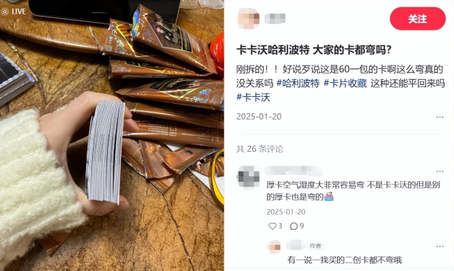 卡卡沃的品控问题同样是一大隐患。社交平台上有大量关于卡卡沃“弯卡”的吐槽,虽有人指出这是PET材质厚卡的通病,但它确实严重影响收藏体验。