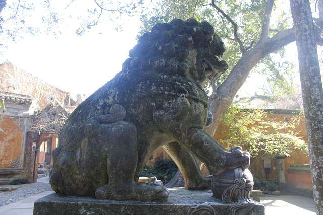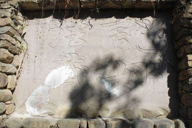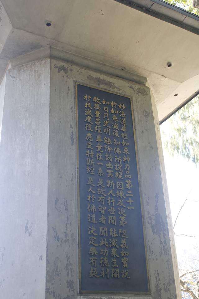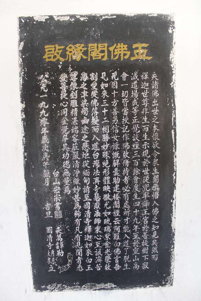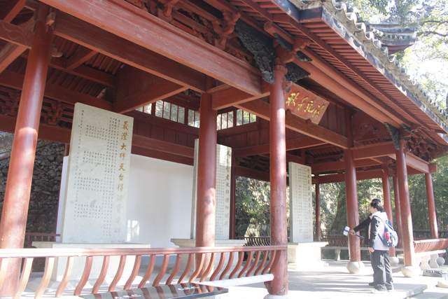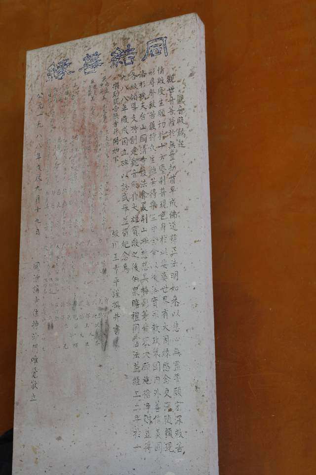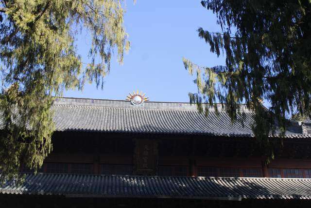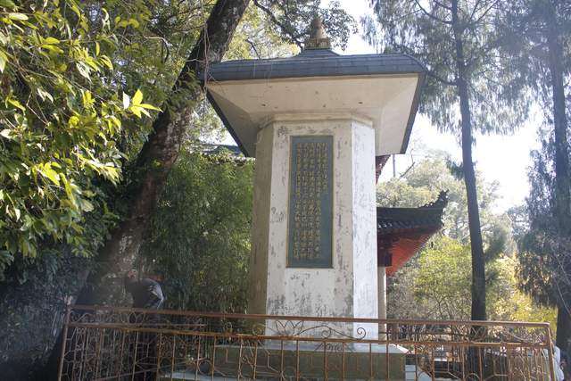 寺院门口有一块碑,上面写着“一行到此水西流”。