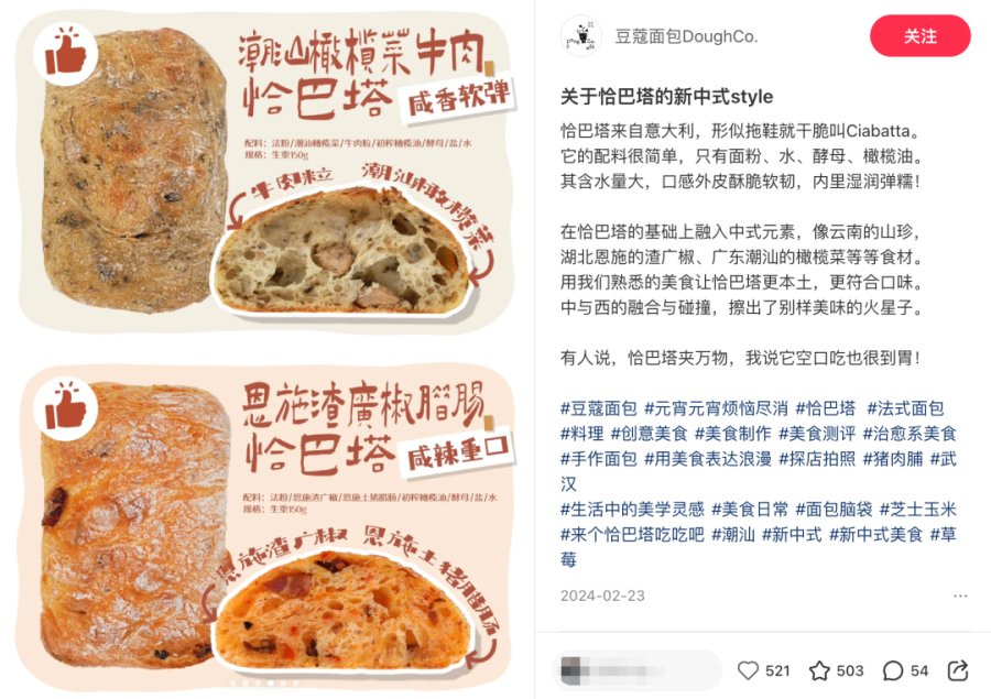不仅如此,惊蛰研究所在查找恰巴塔相关的资料时还发现,许多国内的小众烘焙品牌,早已想到通过融入中式元素的方式,对恰巴塔进行本地化的开发。