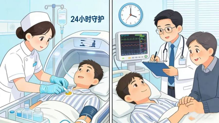 从供者筛查到预处理用药,从干细胞精准回输到骨髓抑制期的全方位守护,血液一科医护人员日夜坚守,精准监测每一项指标,提前预判并化解感染、排斥等多重风险。护理团队同步开展精细化无菌护理,还贴心进行心理疏导,缓解王强和家属的焦虑。