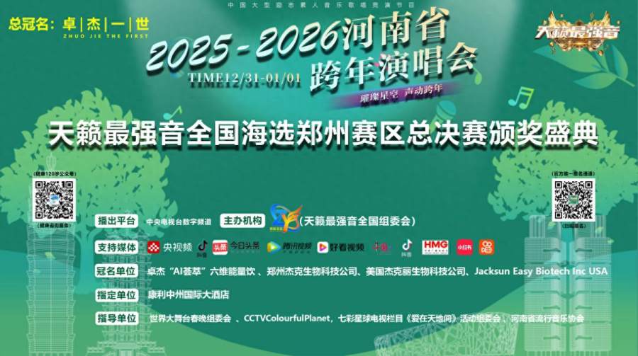 2025年12月31日晚,由河南卓依文化传播有限公司主办的中央电视台数字频道播出的《天籁最强音》郑州赛区总决赛颁奖盛典,在郑州市汇艺剧院圆满落幕。