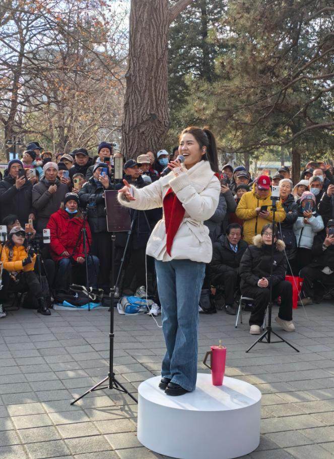 此次紫竹院之行,胡启越更特意带来了她不久前发布的新作《福到万家》,这首充满年节喜庆气息的歌曲,以其“户纳千祥福进万家”的吉祥寓意和幸福洋溢的旋律,为冬日公园提前带来了新春的欢愉与祝福,也与经典红歌共同编织出对家国与时代的深情礼赞。