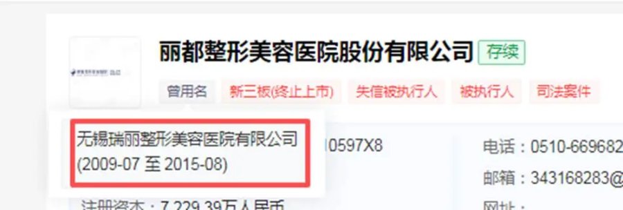 据天眼查数据显示,2015年8月26日,无锡瑞丽整形美容医院有限公司整体变更为丽都整形美容医院股份有限公司,并于同年11月24日成功在新三板挂牌上市,一时风光无限。