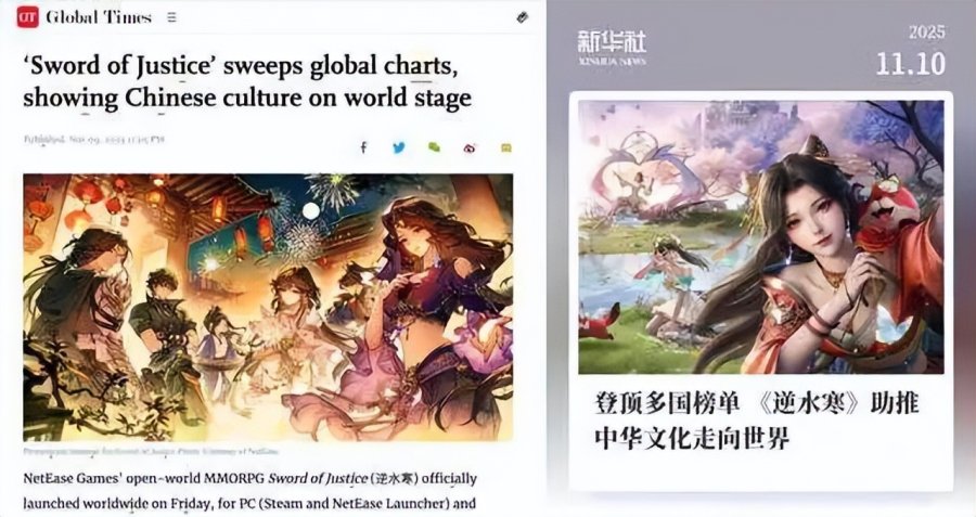 也许是武侠风的《永劫无间》在海外市场成功,让网易动起了让旗下武侠游戏进军海外市场的念头,2025年11月7日,网易将2023年的爆款《逆水寒》手游发行至海外全球129个国家及地区(英文名《SWORD OF JUSTICE》,发布5个包体,分别面向美洲、欧洲、东南亚中亚、日本与韩国,未上线印度)。为了让海外玩家更好地体验游戏,网易还专门在Steam平台推出了《逆水寒》手游的国际服PC版。