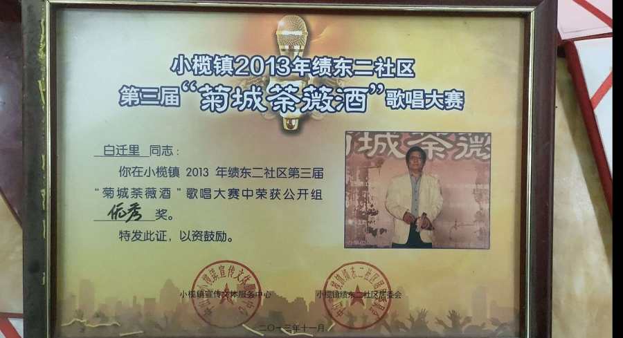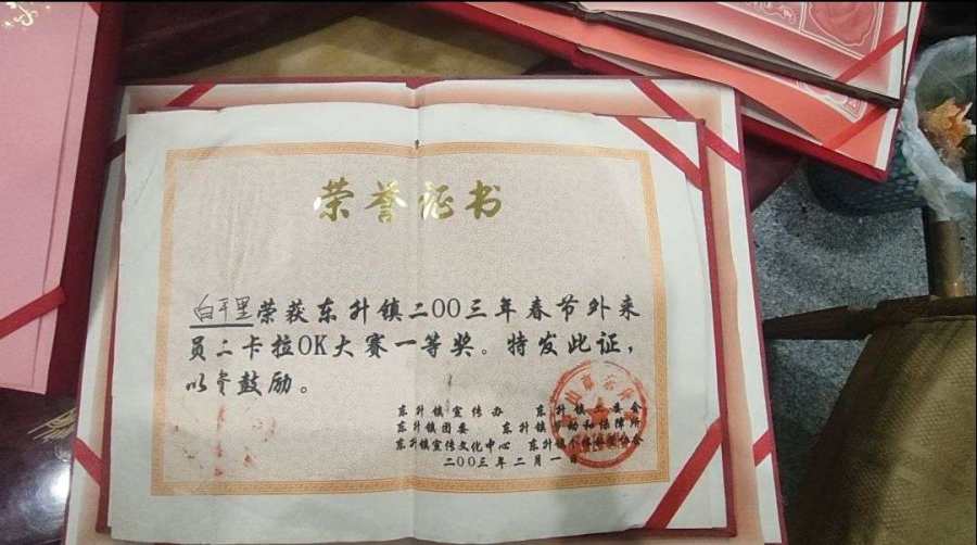 白千里的家中,一个老旧的木盒子里装满了荣誉证书和奖杯。其中不乏分量十足的奖项:广东省中山市东凤镇卡拉ok大赛特等奖、中山市小榄镇卡拉ok大赛一等奖、中山市东凤镇外来农民工卡拉ok大赛一等奖、江门市古镇电视台举行的歌曲大赛三等奖……一本本证书、一座座奖杯,密密麻麻地摆满了桌面,无声地诉说着他在音乐路上的坚持与收获,这上百份荣誉,也是对他半个多世纪音乐追求的最佳认可。