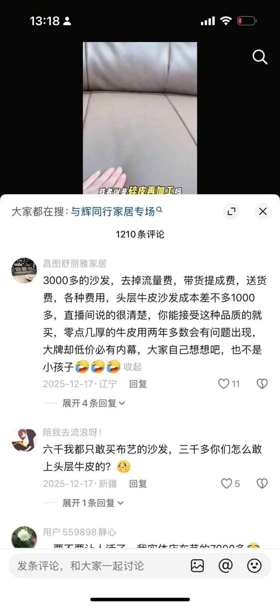 一时间,家居这个极重线下体验、长决策周期的品类,在直播间实现了“快消式”的爆发。然而,伴随单量奇迹而来的,是满屏的“代工”质疑与利润拷问:3000多元买大厂真皮沙发,能买到真货吗?