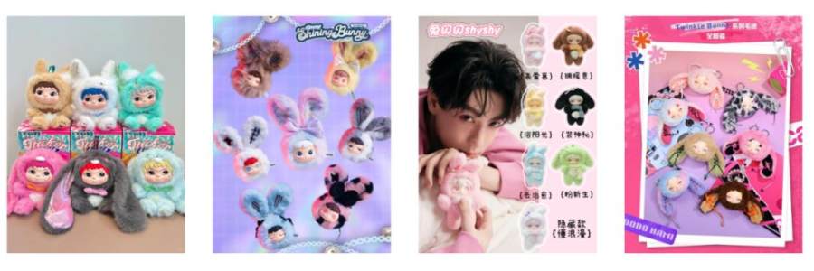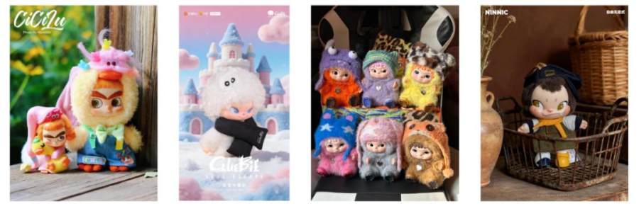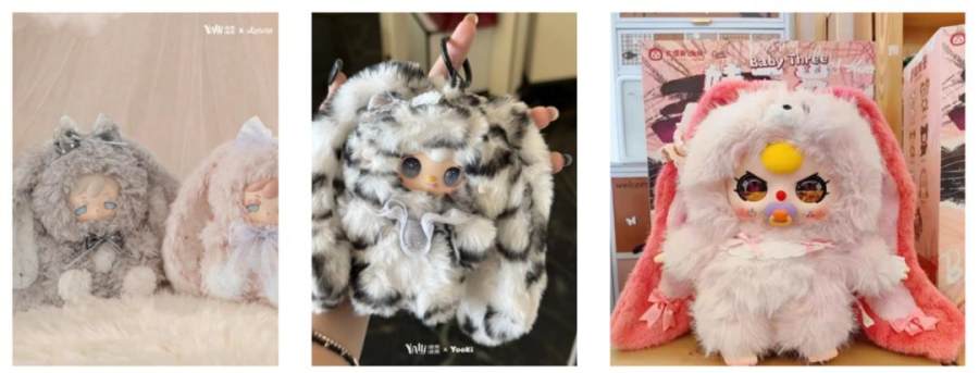另一方面,成熟的搪胶毛绒供应链,擅长快速复刻已经过验证的工艺和造型。在效率优先的前提下,选择在已经被市场验证过的搪胶毛绒外观类型上进行“微创新” ,成了多数品牌的选择。
