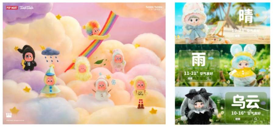 IP们不仅在形象上相似,连讲述故事的“场景”也高度重复:天气预报、森林、美食、圣诞等具备强视觉延展性和情感共鸣的主题,成为几乎所有IP的“必修课”。