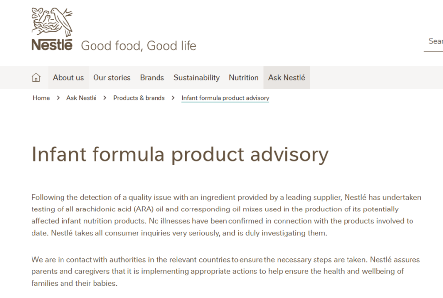 虽然雀巢集团在声明中表示,已对可能受影响的产品进行了花生四烯酸(ARA)油脂及相关油脂混合物检测,尚未接到因食用该配方奶粉导致不适或患病的报告。但市场已经开始对雀巢的品控产生质疑了。