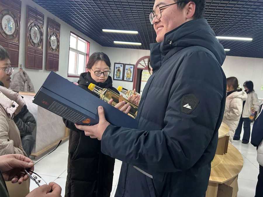 参观过程中,同学们对九九龄坚守古法酿造的匠心精神给予高度评价,同时对企业的发展历程、传奇故事,以及古籍记载的醋疗验方表现出浓厚兴趣,纷纷驻足拍照、认真记录。在产品展示厅,面对琳琅满目的系列产品,同学们争相选购心仪的维他醋、果醋等产品。一名安徽籍学生购买了一箱维他醋,欣喜地表示,要趁着寒假带回家,让父母品尝这份来自洛阳的特色风味。